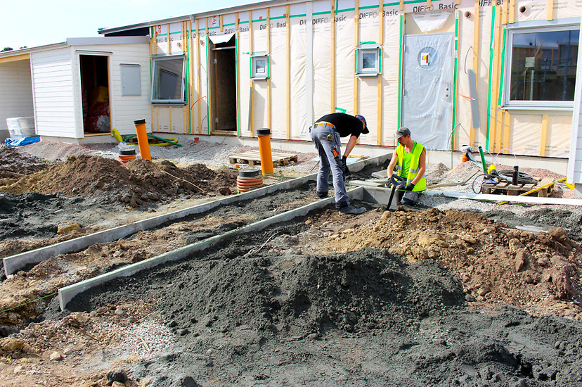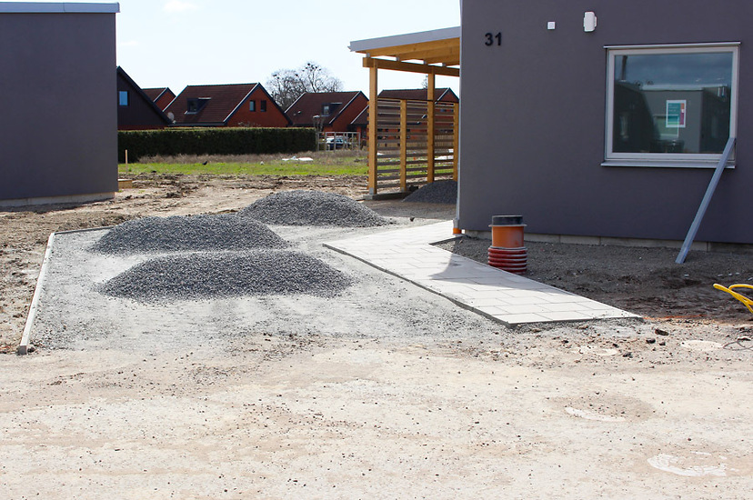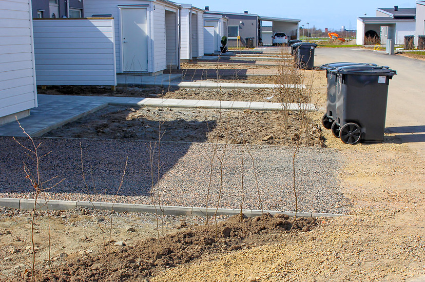 Större anläggningsprojekt i Trelleborg: Plattläggning till gångar, läggning av gräsmatta och anläggning av parkeringsytor. Plantering av avenbokshäckar med mera.