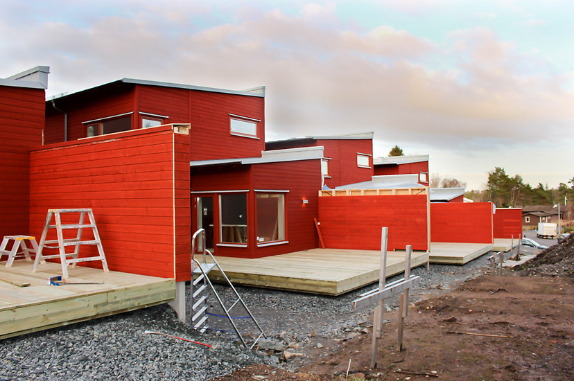 Saver Bygg utför snickeriearbeten till 24 nybyggda hus i ett område i Partille utanför Göteborg.