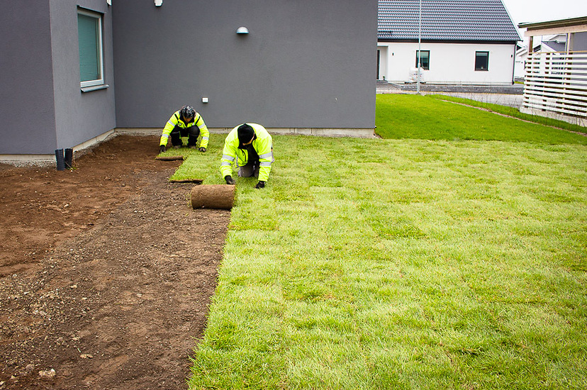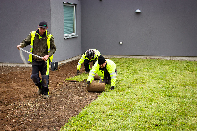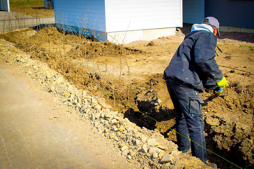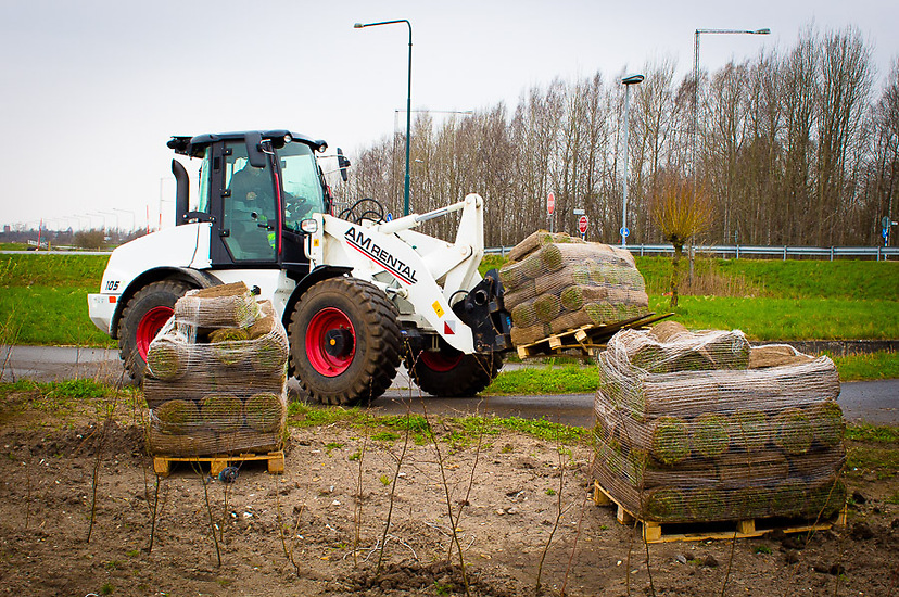 Växter som gräsmattor, träd och buskar hämtas från en professionell plantskola med högsta kvalitet. Vi använder egna entreprenadmaskiner som grävmaskiner och hjullastare (och ibland hyrda på ett stort projekt som det här) . Du kan se fler bilder här!