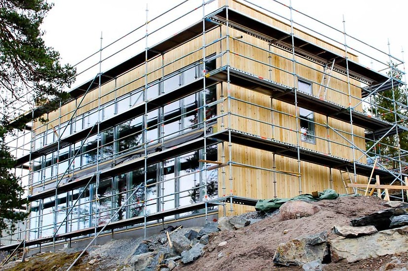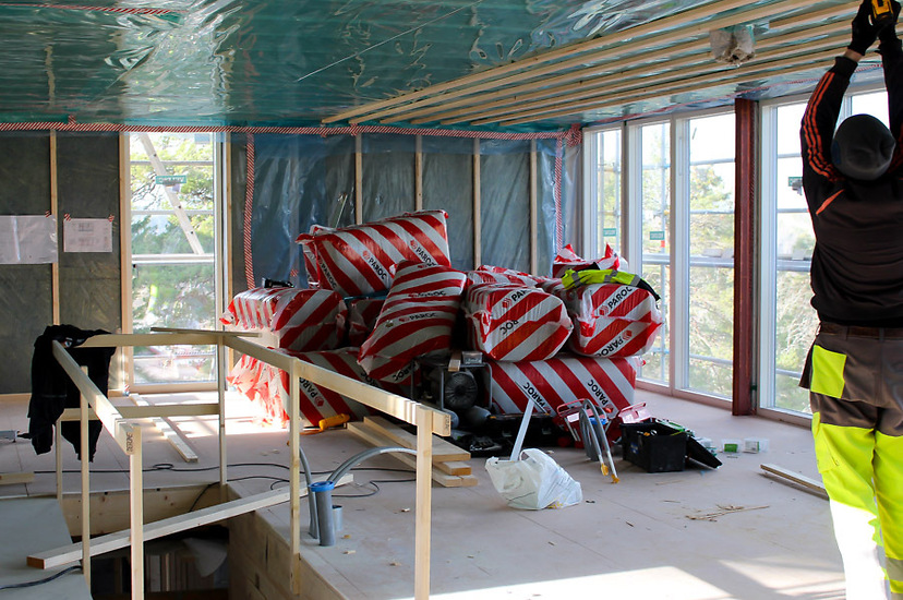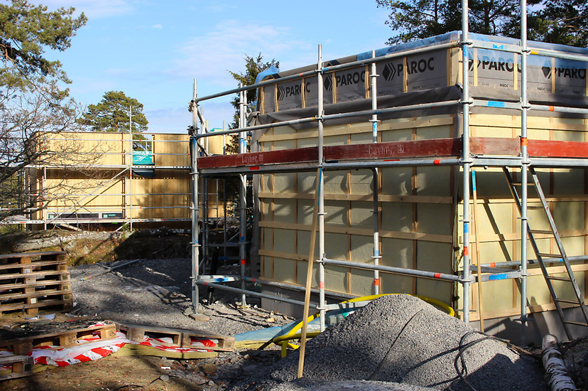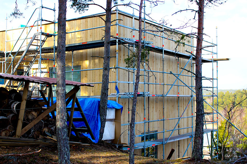 Vi bygger i samarbete med Falkenbergs Bygg AB denna villa i modern, exkusiv stil på Ingarö i Värmdö kommun utanför Stockholm. Saver Bygg har gjort allt yttre och inre snickeriarbete. (Falkenbergs reste stommen).